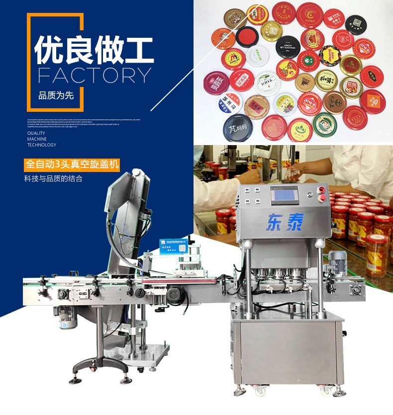 該直線式真空旋蓋機是東泰機械結(jié)合用戶使用情況,摒棄了傳統(tǒng)轉(zhuǎn)盤式真空旋蓋機的弊端,研制開發(fā)的新型高效設(shè)備,設(shè)備自動檢測到兩個瓶子蓋子進(jìn)入到雙頭真空旋蓋機內(nèi),旋蓋機彩色顯示屏?xí)崟r顯示旋蓋狀況,整機多點檢測,當(dāng)進(jìn)口無瓶無蓋、出口堵塞、定位不準(zhǔn)、瓶身傾倒均自動停機。單個旋蓋頭達(dá)到的真空度都可以單獨顯示,單獨調(diào)整。合格