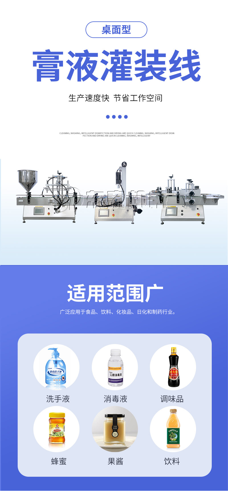 桌面型自動灌裝機是我公司的灌裝封口設備系列,適用于灌裝各種圓形,異型瓶和小瓶。 洗手液灌裝機主要適用于各種注射劑,消毒劑,口服液和糖漿,酒精和各種醫(yī)用液體的灌裝。 它廣泛用于食品,制藥,化學工業(yè)和科學研究領域。